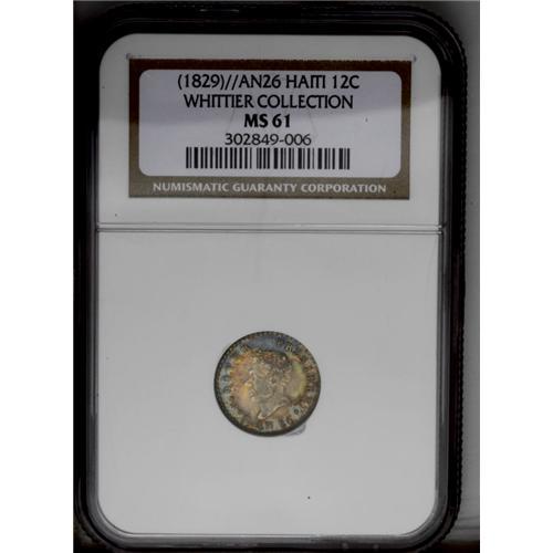 Republic 12 Centimes An 26 (1829), KM19, MS61 NGC, mult Republic 12 Centimes An 26 (1829),