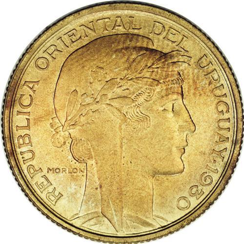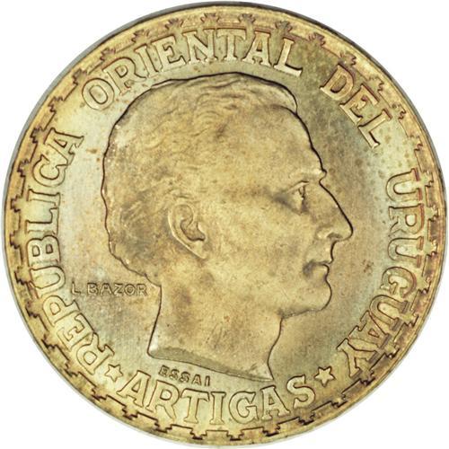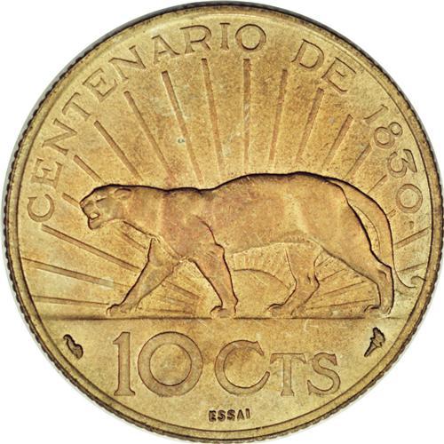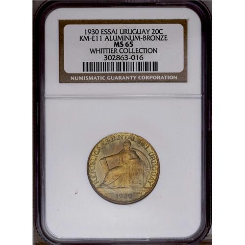 <B>Republic 1930 Pattern Set, </B></I>three denominations in aluminum-bronze, all with ESSAI, and complete with the original maroon presentation box. KM-E8 10 Centesimos, MS64 NGC, KM-E11 20 Centesimos, MS65 NGC and KM-E13 5 Pesos, MS64 NGC. A rare set and particularly desirable with the original case of issue.