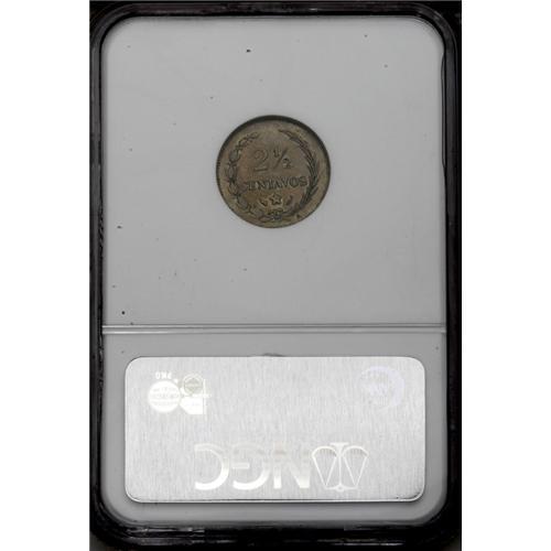 <B>Republic 2 1/2 Centavos 1888A Small Date, </B></I>KM7.2, MS63 NGC, medium toning with sharp details.