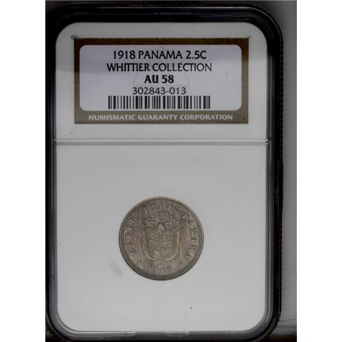 Republic 2 1/2 Centesimos 1918, KM7.2, AU58 NGC, lightl Republic 2 1/2 Centesimos 1918,