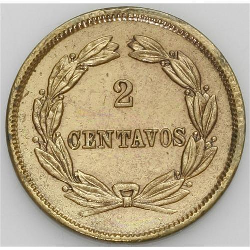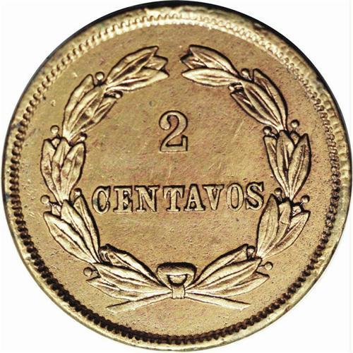 <B>Republic 2 Centavos 1878, </B></I>KM164.1, bold XF-AU, harshly cleaned and obverse rim nick at 9 o'clock. Despite the problems this is rare condition for this type. Reverse with denomination as 2 CENTAVOS.