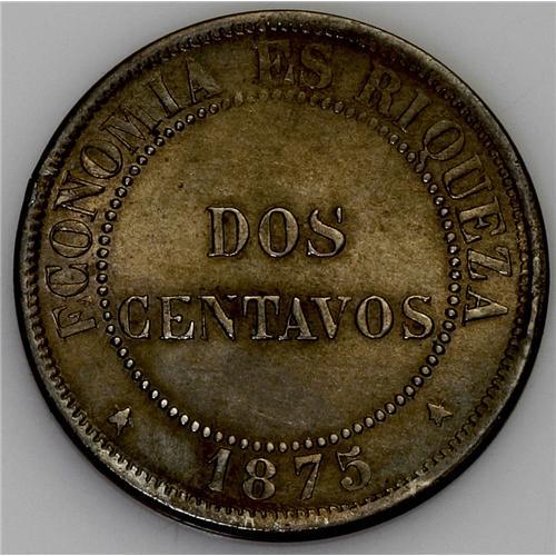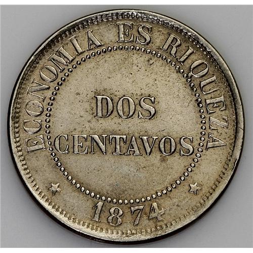 Republic 2 Centavos - Three Dates, KM147, 1874, cleaned Republic 2 Centavos - Three Dates,