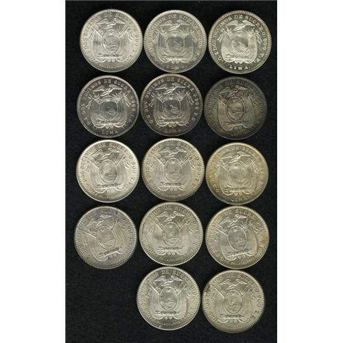 <B>Republic 2 Decimos - Date Run, </B></I>KM51 1892/89 BU, 1894/3 AU, 1895 Philadelphia (2) AU and choice toned UNC, 1914 Lima (3) UNC and 1914 Philadelphia (2) UNC and 1916 Philadelphia (5) UNC. <B>Sold as is, no return lot.</B></I><BR><I>From the Shinholser Collection</B></I><BR><BR><b>Shipping:</b> Coin/Currency (<a target="_blank" href="http://www.heritageauctions.com/common/shipping.php">view shipping information</a>)