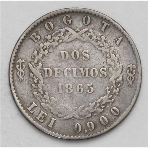Republic 2 Decimos - Two Types, KM149, 1865 Bogota, ton Republic 2 Decimos - Two Types,