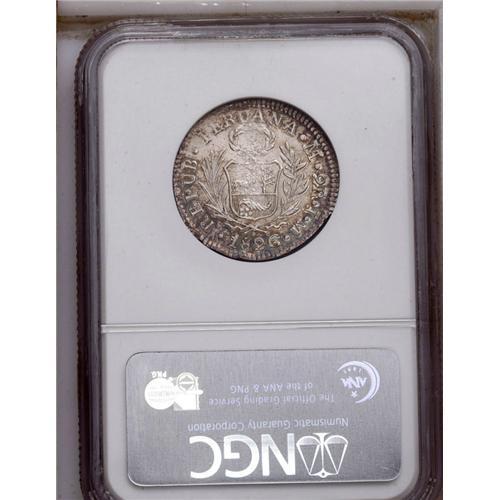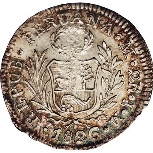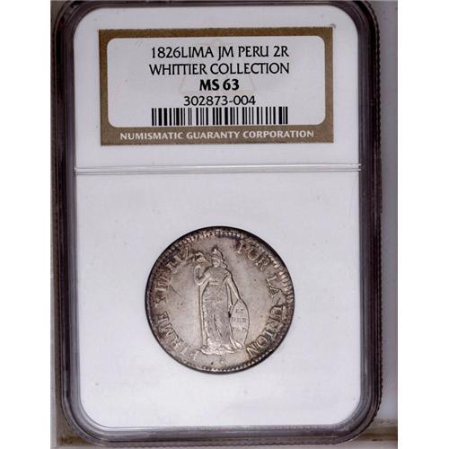 Republic 2 Reales 1826-JM Lima, KM141.1, MS63 NGC, high Republic 2 Reales 1826-JM Lima,