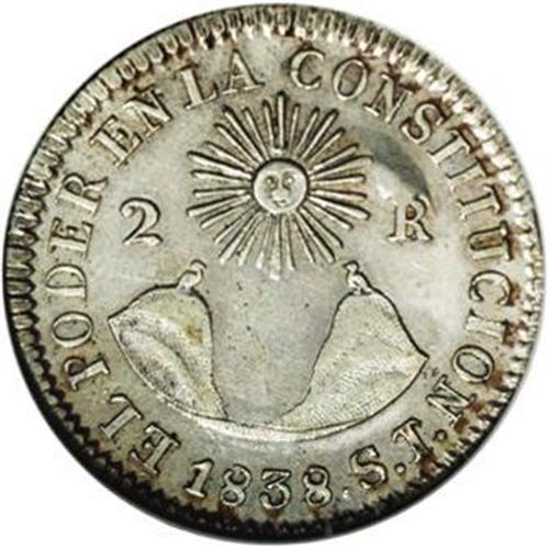 Republic 2 Reales 1838-ST, KM18, regular legend positio Republic 2 Reales 1838-ST,