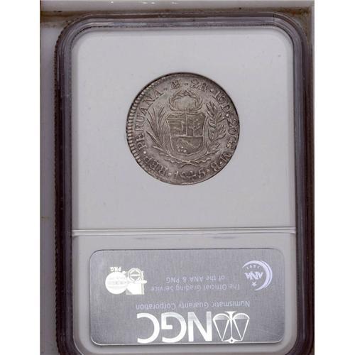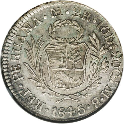 Republic 2 Reales 1845-MB Lima, KM141.3, MS61 NGC, a ni Republic 2 Reales 1845-MB Lima,