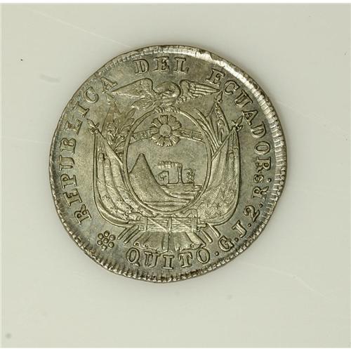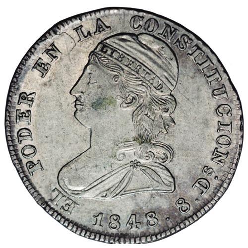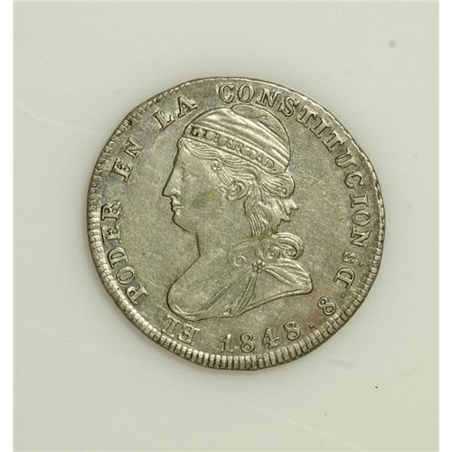 <B>Republic 2 Reales 1848/7-GJ, </B></I>KM33, choice lightly toned AU, fully original with considerable mint luster. Very scarce grade for this type.<BR><I>From the Shinholser Collection</B></I><BR><BR><b>Shipping:</b> Coin/Currency (<a target="_blank" href="http://www.heritageauctions.com/common/shipping.php">view shipping information</a>)