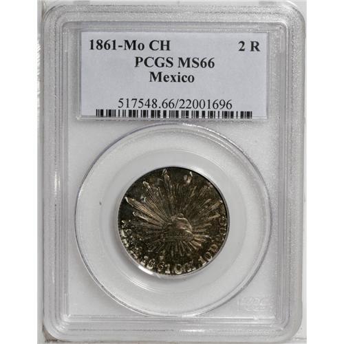 Republic 2 Reales 1861-Mo-CH, KM374.10, MS66 PCGS, a sp
