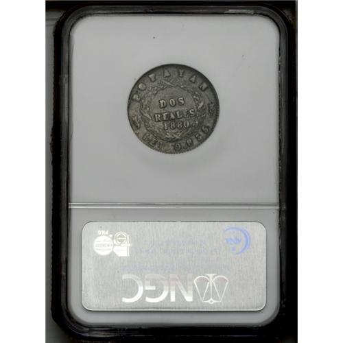 Republic 2 Reales 1880 Popayan, KM162, XF45 NGC, toned Republic 2 Reales 1880 Popayan,