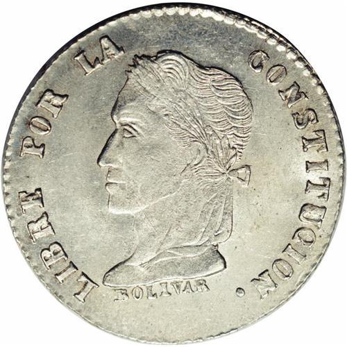 <B>Republic 2 Soles 1859/8-FJ, </B></I>KM121.3, MS64 NGC, BOLIVAR below the neck truncation, superb brilliant UNC with subtle emerging champagne toning. Very rare type in this stunning condition.