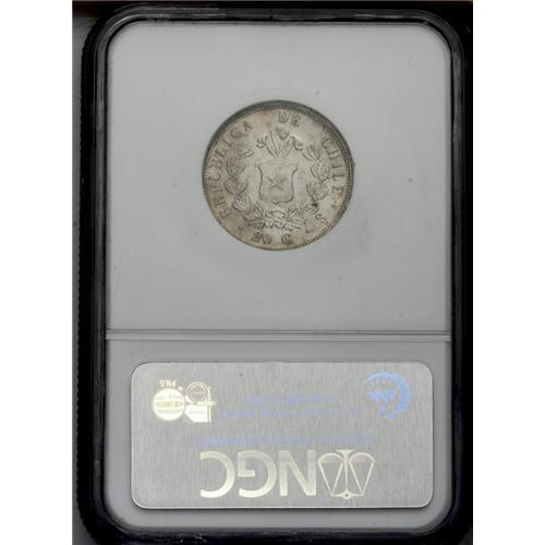<B>Republic 20 Centavos 1857, </B></I>KM125, MS62 NGC, virtually fully lustrous, subtle champagne toning emerging at the edges.