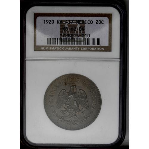 Republic 20 Centavos 1920, KM437, MS62 Brown NGC, gloss