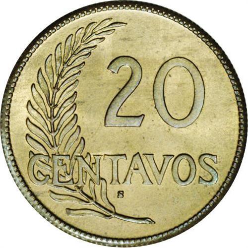 Republic 20 Centavos 1943S, KM215a.2, MS64 NGC, a choic Republic 20 Centavos 1943S,
