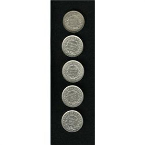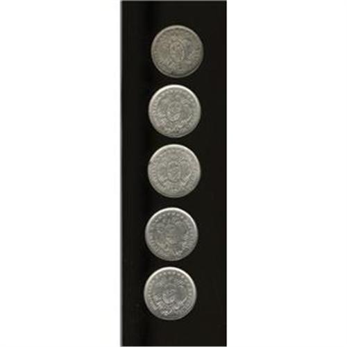 <B>Republic 20 Centavos Date Collection, </B></I>KM159.2 1885-FE, toned UNC, 1886-FE, XF-AU, 1887-FE, choice UNC, 1888-FE, AU-UNC and 1889-FE small date, UNC. <B>Sold as is, no return lot.</B></I>