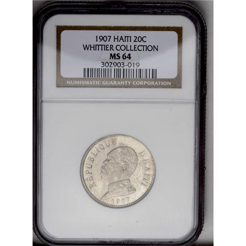 Republic 20 Centimes 1907, KM55, MS64 NGC, fully proofl Republic 20 Centimes 1907,