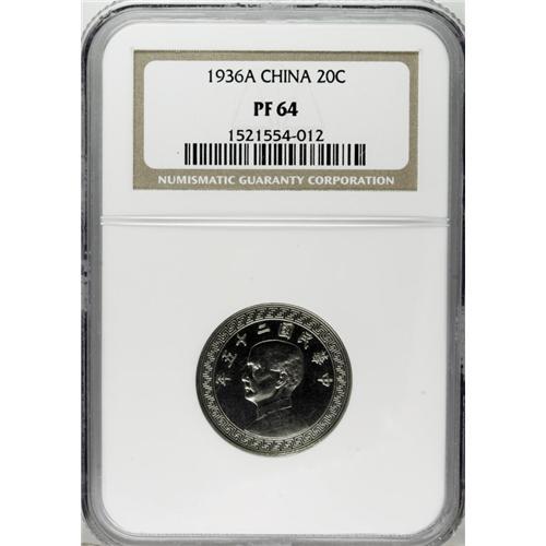 Republic 20 Cents 1936A, KM350.1, Proof 64 NGC, a choic