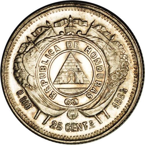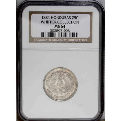 <B>Republic 25 Centavos 1884, </B></I>KM50, MS64 NGC, a superb example with extremely sharp details and prooflike mint brilliance, easily one of the nicest of this type we have seen.