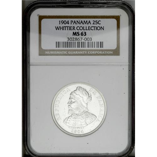 Republic 25 Centesimos 1904, KM4, MS63 NGC, a nice lust Republic 25 Centesimos 1904,