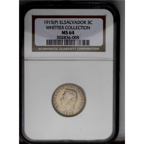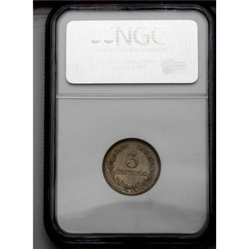 <B>Republic 3 Centavos 1915, </B></I>KM128, MS64 NGC, a particularly choice coin with very light toning and sharp details.