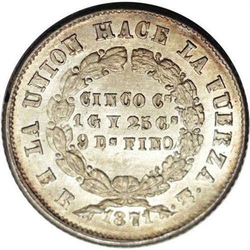 Republic 5 Centavos 1871-ER, KM156.1, MS63 NGC, lightly Republic 5 Centavos 1871-ER,