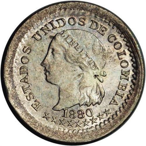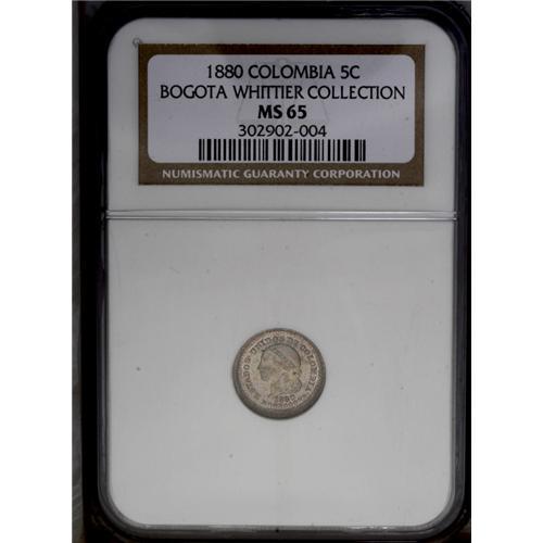 Republic 5 Centavos 1880 Bogota, KM174a.1, MS65 NGC, su Republic 5 Centavos 1880 Bogota,