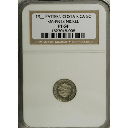 <B>Republic 5 Centimos Pattern in copper-nickel with unfinished date 19-- (1929 type),</B></I> KM-PN13, Proof 64 NGC. Light scuffs on the obverse with a bright reflective reverse.<BR><BR><b>Shipping:</b> Coin/Currency (<a target="_blank" href="http://www.heritageauctions.com/common/shipping.php">view shipping information</a>)