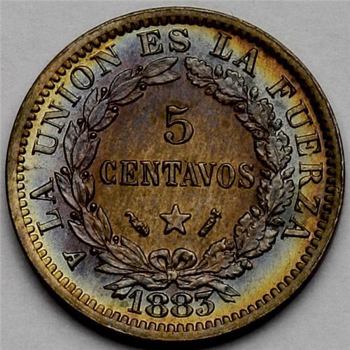 Republic 5 Centavos - Type Tandem, KM169.1 1883A, first Republic 5 Centavos - Type Tandem,