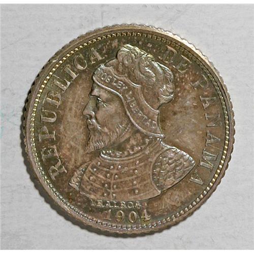 <B>Republic 5 Centesimos 1904, </B></I>KM2, gem Proof with iridescent toning and superb original surfaces. Only 12 Proofs were minted and few have survived, especially unimpaired. The edge has been slightly shaved at the mint, possibly to remove excess metal or weight. It is not immediately noticeable and detracts little from this amazing rarity. <BR><I>From the Louis E. Eliasberg, Sr. Collection</B></I><BR><BR><b>Shipping:</b> Coin/Currency (<a target="_blank" href="http://www.heritageauctions.com/common/shipping.php">view shipping information</a>) <BR><BR><B>Important notice
