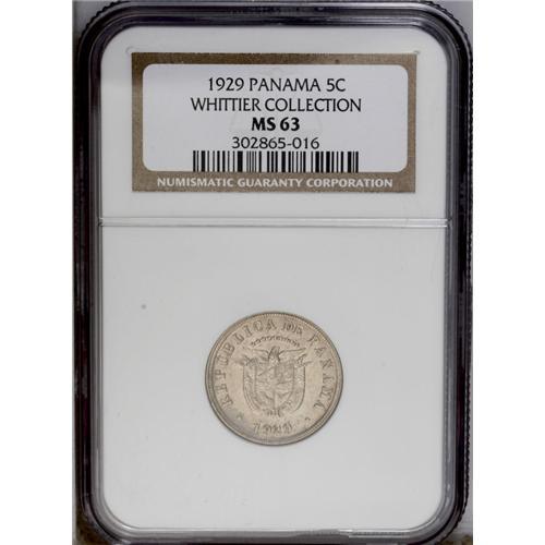 Republic 5 Centesimos 1929, KM9, MS63 NGC, considerable Republic 5 Centesimos 1929,