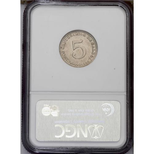<B>Republic 5 Centesimos 1929, </B></I>KM9, MS63 NGC, considerable mint luster.