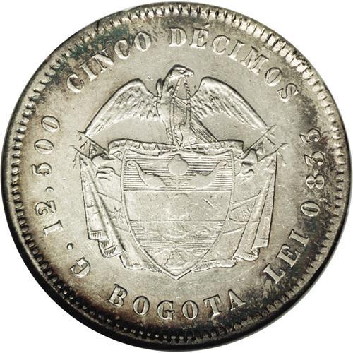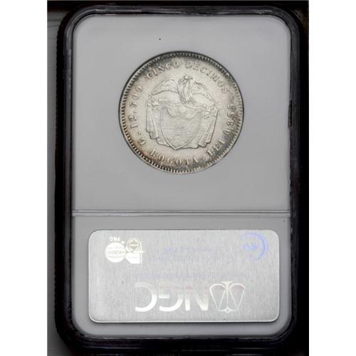 Republic 5 Decimos 1871 Bogota, KM153.1, AU55 NGC, nice Republic 5 Decimos 1871 Bogota,