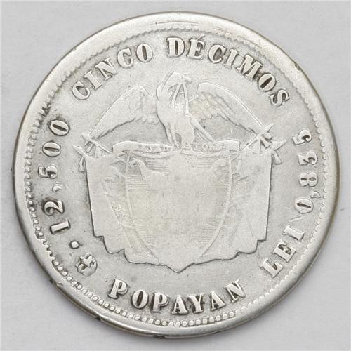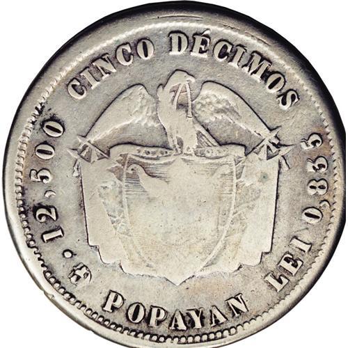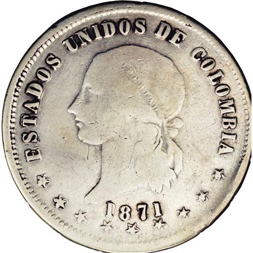 Republic 5 Decimos 1871 Popayan, KM153.6, very nice Fin Republic 5 Decimos 1871 Popayan,