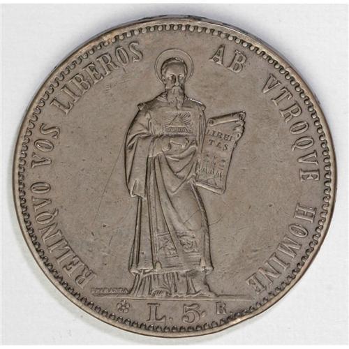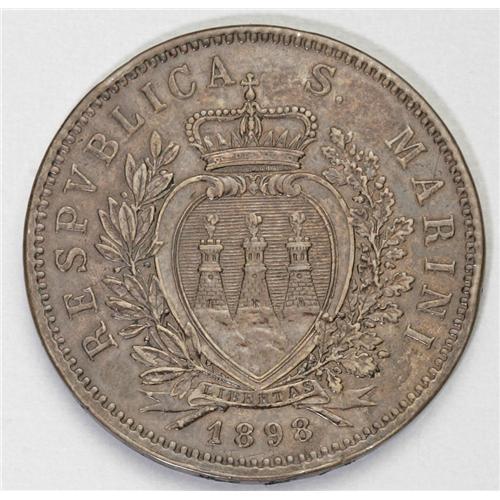 <B>Republic 5 Lire 1898R, </B></I>KM6, polished at one time and now heavily toned.