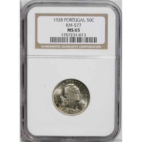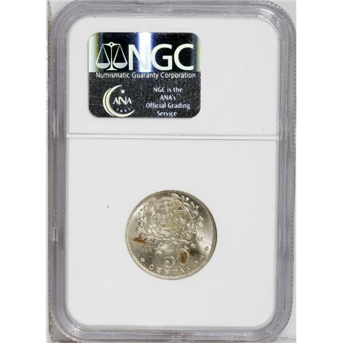 <B>Republic 50 Centavos 1928, </B></I>KM577, MS65 NGC, fully brilliant with some light toning on the reverse, rare early date in Mint State.