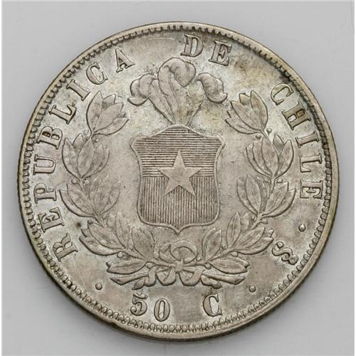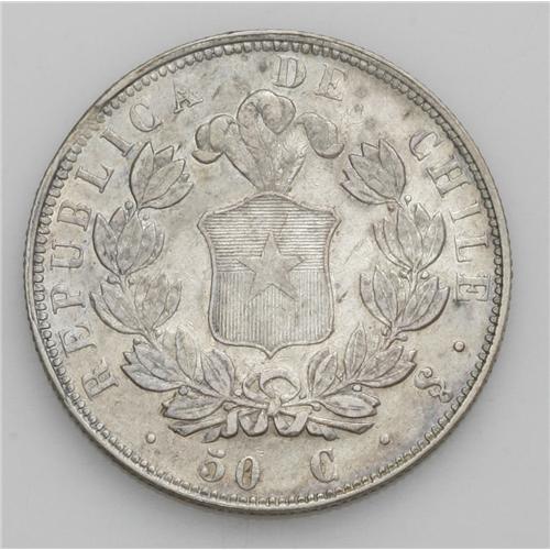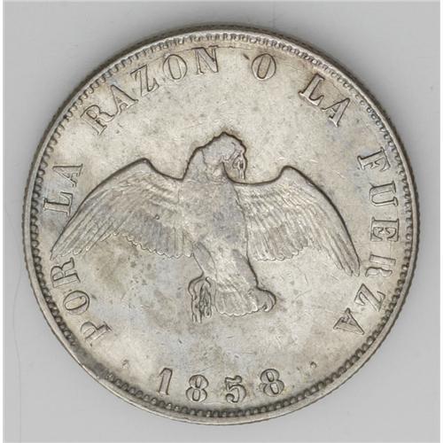 Republic 50 Centavos - Two Dates, KM128 1858, repunched Republic 50 Centavos - Two Dates,