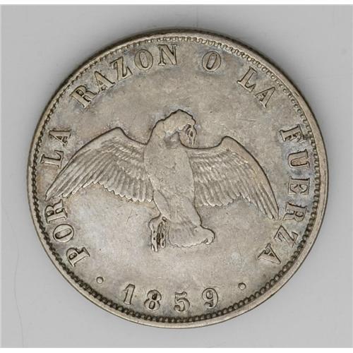 <B>Republic 50 Centavos - Two Dates, </B></I>KM128 1858, repunched second 8, lightly toned VF-XF with considerable mint luster and 1859, nice toned VF.