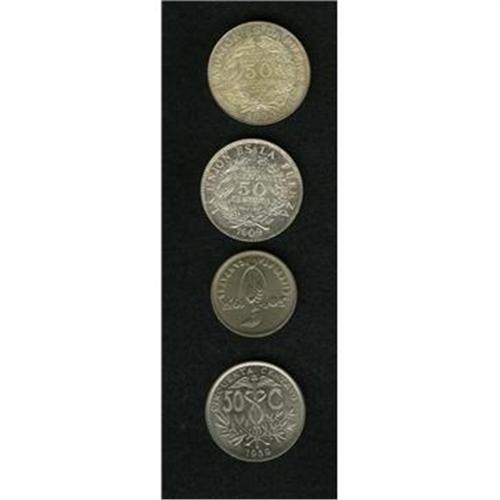 <B>Republic 50 Centavos Type Assortment, </B></I>KM175.2 1900-So, lightly toned UNC, very scarce grade, KM177 1909H, choice brilliant UNC, KM181 1937, choice lustrous UNC, scarce type, and KM182 1939, choice BU. <B>Sold as is, no return lot.</B></I>