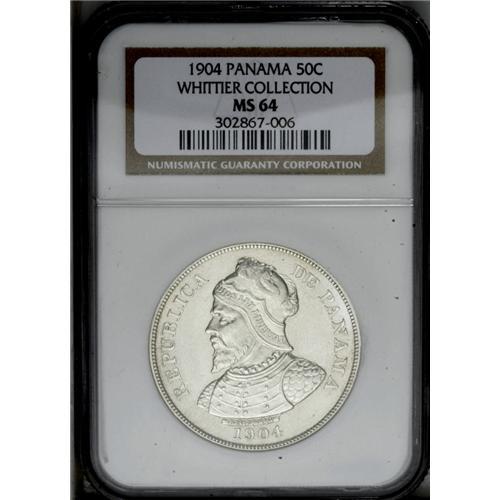 <B>Republic 50 Centesimos 1904, </B></I>KM5, MS64 NGC, a superb coin with unusually problem-free surfaces and full mint brilliance, very scarce and desirable grade for this crown-sized type.