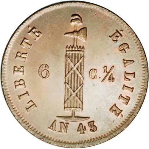 <B>Republic 6 1/4 Centimes 1846-An 43, </B></I>KM29, MS66 NGC Brown, an incredible example with virtually perfect surfaces and abundant red mint luster. Certainly among the finest known, it would be difficult to envision a more handsome specimen.