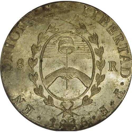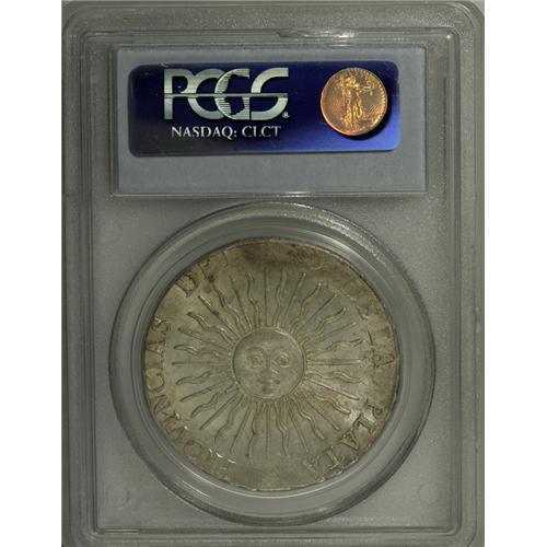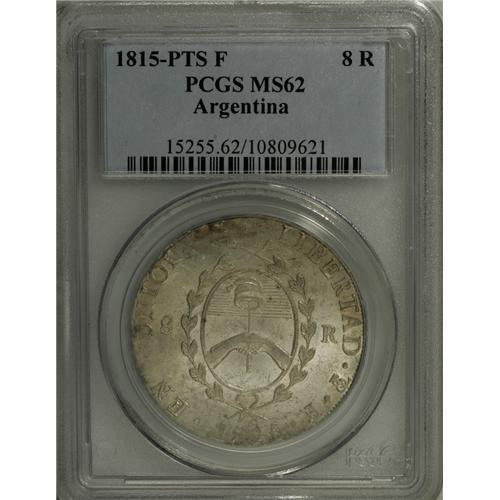 <B>Republic 8 Reales 1815-F PTS, </B></I>KM14, MS62 PCGS, a choice coin with light toning and full mint brilliance. Mint state examples of this type are highly elusive.<BR><I>From the Monedas Oro Collection</B></I><BR><BR><b>Shipping:</b> Coin/Currency (<a target="_blank" href="http://www.heritageauctions.com/common/shipping.php">view shipping information</a>)