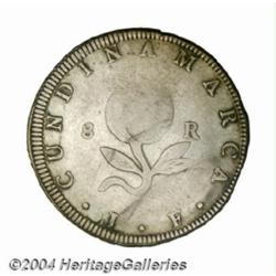 Republic. 8 Reales 1821-JF, KM6, type without the Bogota mintmark, AVF, a nice example of this crude coinage with strong legends and light, attractive toning.From the Morris Geiger Collection. Important notice: Heritage usually auctions material at the rate of 200-250 lots per hour. On some occasions eBay Live bid software or the Internet may not be able to keep up with the pace of the auction. We recommend placing a realistic absentee bid now as insurance to avoid disappointment. Occasionally the auctioneer may eliminate or reject an eBay Live bid, and the auctioneer may also reopen a lot after the close of the eBay live bidding (usually because we missed an audience bid), and may reject your bid even if it shows you as the winning bidder. By bidding via eBay Live, you agree that Heritage may award the lot to another bidder at its sole discretion under the circumstances described above or any other reasonable circumstances. Also please note that all Heritage lots purchased through eBay Live carry a 20% Buyer's Premium. Please make sure you read the Terms and Conditions before you bid.