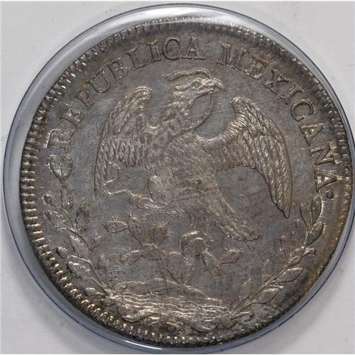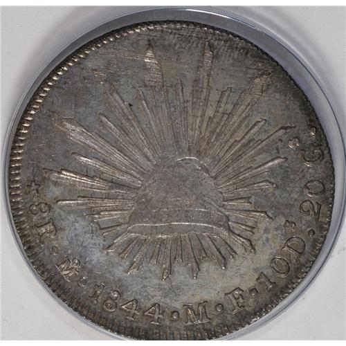 <B>Republic 8 Reales 1844-Mo-MF, </B></I>KM377.10, superb toned UNC, slightly soft strike at the centers but the surfaces are highly reflective and the overall eye appeal is undeniable.