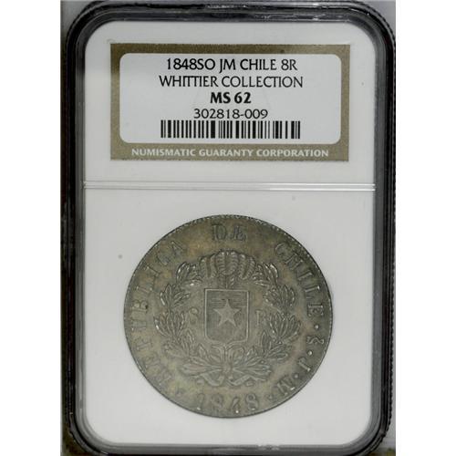 Republic 8 Reales 1848-JM, KM96.2, reduced diameter, MS Republic 8 Reales 1848-JM,