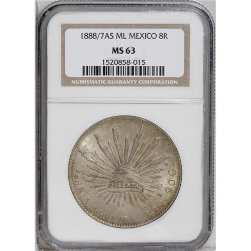 <B>Republic 8 Reales 1888/7-As-ML, </B></I>KM377, MS63 NGC, lightly toned, one spot on the reverse rim, scarce overdate variety.