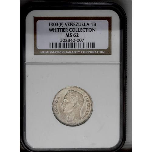 Republic Bolivar 1903, KM-Y22, MS62 NGC, lightly toned Republic Bolivar 1903(P),