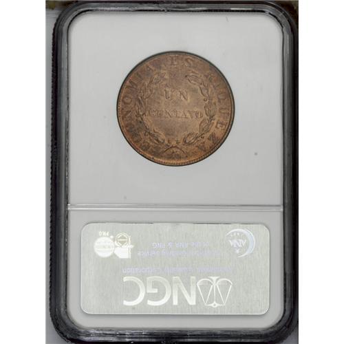 Republic Centavo 1851 Raised Star, KM120, MS63 NGC Red Republic Centavo 1851 Raised Star,