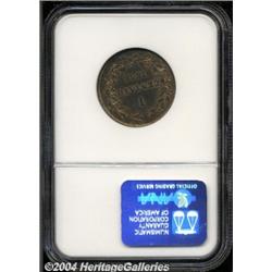 <B>Republic Centavo 1858 Pattern, </B></I>KM-Pn34, MS63 Brown NGC, considerable mint luster, especially on the reverse. Incuse LIBERTAD, thin planchet. Scarce. <BR><BR><B>Important notice:</B> Heritage usually auctions material at the rate of 200-250 lots per hour. On some occasions eBay Live bid software or the Internet may not be able to keep up with the pace of the auction. We recommend placing a realistic absentee bid now as insurance to avoid disappointment. Occasionally the auctioneer may eliminate or reject an eBay Live bid, and the auctioneer may also reopen a lot after the close of the eBay live bidding (usually because we missed an audience bid), and may reject your bid even if it shows you as the winning bidder. By bidding via eBay Live, you agree that Heritage may award the lot to another bidder at its sole discretion under the circumstances described above or any other reasonable circumstances. Since eBay bids are not shown to us until we open the lot on the floor, we treat those bids just like floor bids. In most cases the floor responds before the eBay bid is presented to us, due to Internet lag time, so for consistency we have made it a policy that floor bids are always considered first over tie eBay live bids. Also please note that all Heritage lots purchased through eBay Live carry a 20% Buyer's Premium. Please make sure you read the Terms and Conditions before you bid.