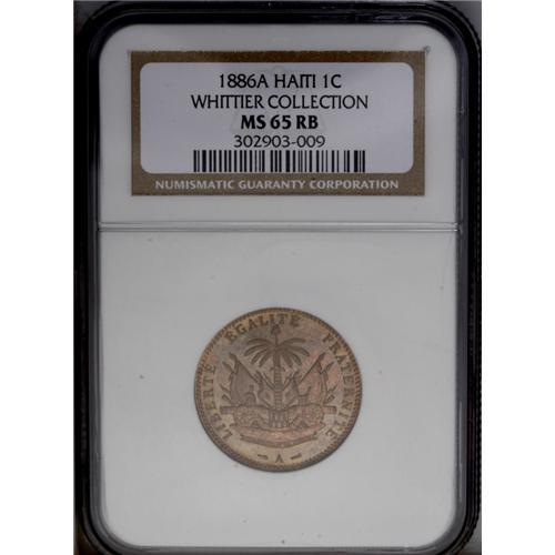 Republic Centime 1886A, KM48, MS65 NGC Red & Brown, cho Republic Centime 1886A,
