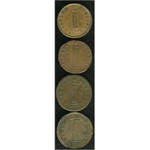 <B>Republic Centime - Four Dates, </B></I>KMA21, 1828-An 25, glossy brown XF, scarce date and grade, 1829-An 26, crude VF, possible overdate, 1830-An 27, VF, and 1831-An 28, VF+, very lightly porous. A nice group of these popular early issues. <B>Sold as is, no return lot.</B></I>